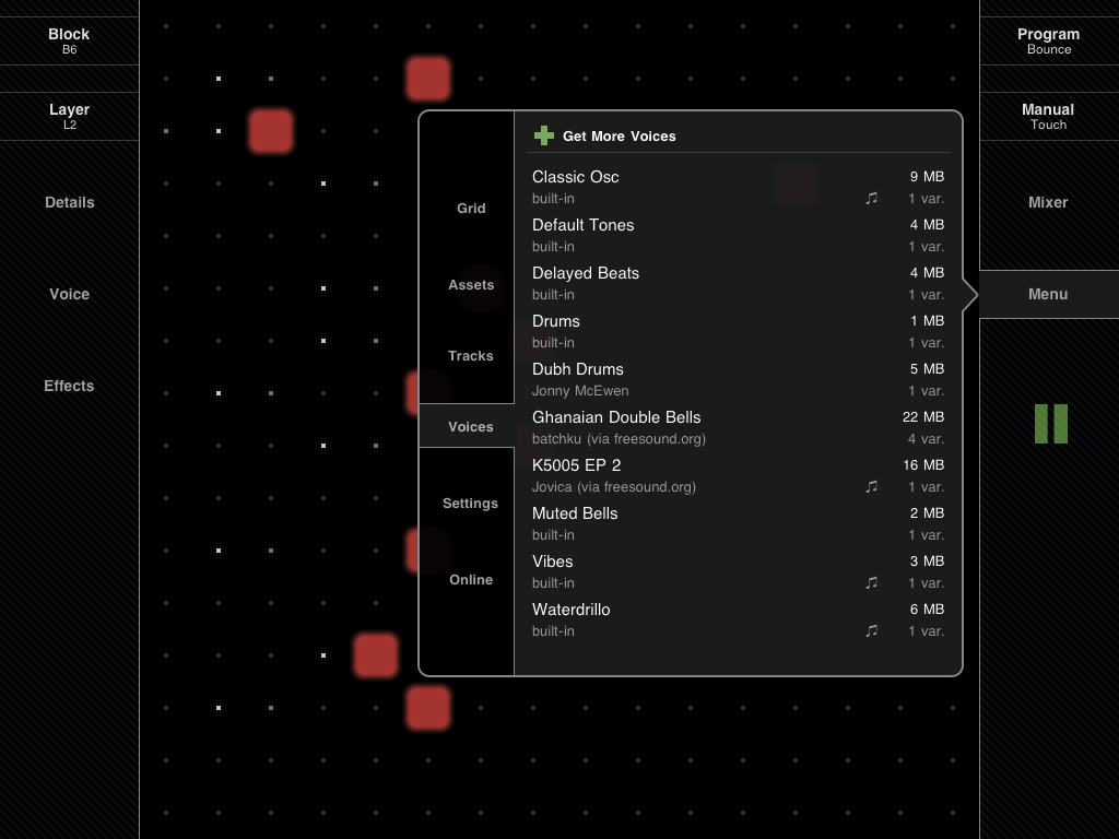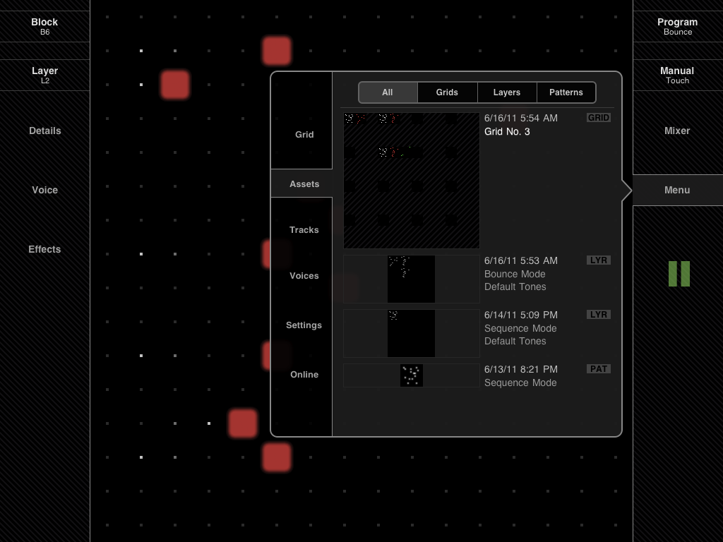 SoundGrid Live! is a powerful matrix sequencer for iPhone, iPod Touch and iPad inspired by the revolutionary Yamaha Tenori-on instrument and suitable for professional musicians as well as for casual entertainment.